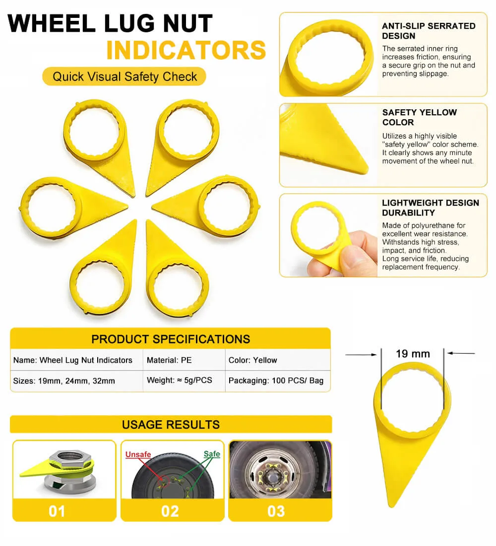 - Safety & Maintenance: Helps prevent wheel detachment accidents and ensures timely maintenance.